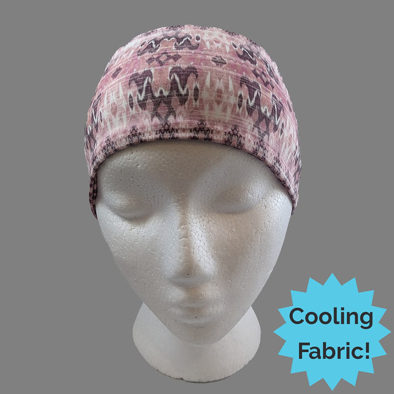 Stay cool and comfortable with this Pink Aztec headband, featuring a striking sublimation graphic that adds style to your active routine. Engineered with advanced wet/dry cooling material, it wicks sweat away while evaporative technology keeps you refreshed during intense workouts or outdoor adventures. The flat back design sits seamlessly under hats or helmets without bunching or shifting. Proudly made in the USA, this versatile headband delivers performance and durability for athletes and outdoor enthusiasts who demand quality gear.