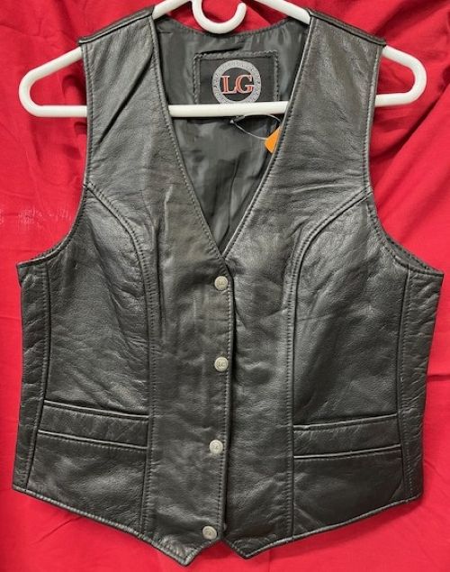 This Ladies Black Leather Motorcycle Vest combines authentic biker aesthetics with practical design. Crafted from premium leather in a flattering mid-length silhouette, the sleeveless construction offers versatile layering options while the snap closure ensures secure, easy fastening. The regular fit and timeless black finish work seamlessly across seasons and occasions, whether you're riding or embracing the motorcycle lifestyle off the road. Built to last with quality craftsmanship, this vest delivers the edgy sophistication that defines classic biker wear.