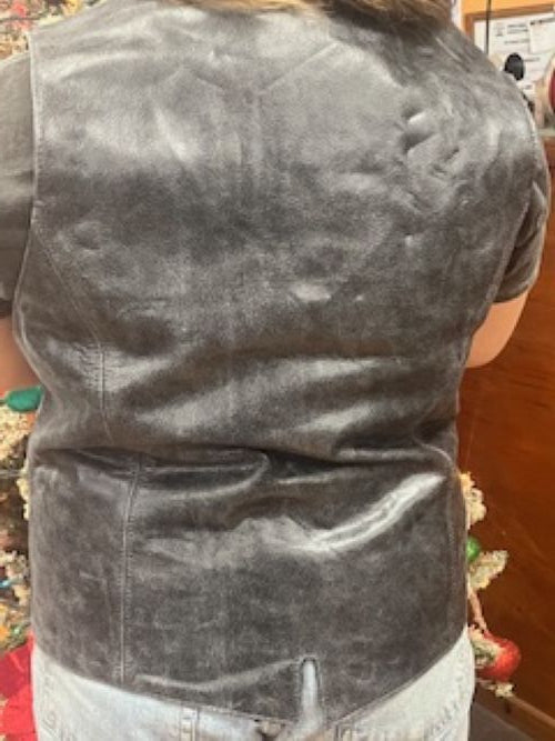 This sophisticated gray leather vest showcases premium full-grain leather with distinctive braid detailing along the front and edges, delivering authentic artisanal character. The structured fit flatters various body types while maintaining a refined silhouette ideal for layering across casual and professional settings. Quality construction ensures lasting durability and develops a rich patina with age. Practical conceal carry pockets add functional versatility to this timeless investment piece that combines expert craftsmanship with enduring style.