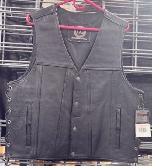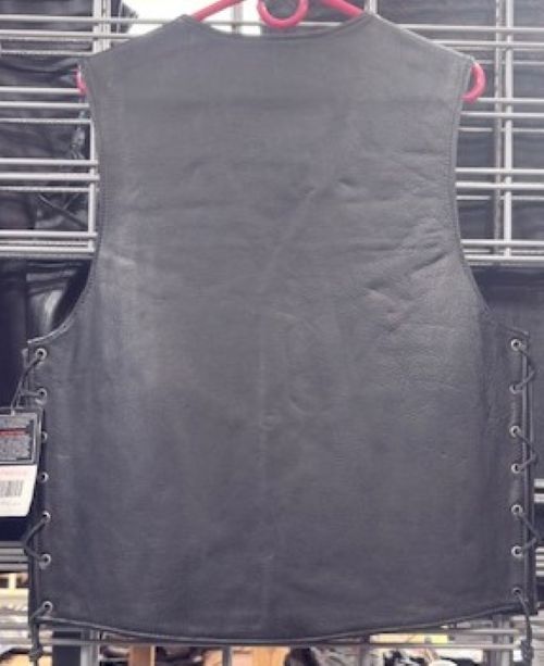 This Men's Black Side Lace Vest combines authentic biker aesthetics with practical functionality. Crafted from genuine leather with a classic V-neck design, the mid-length silhouette works seamlessly across seasons. Snap closures ensure quick fastening, while strategically placed pockets—including concealed carry options—deliver the storage serious riders demand. The distinctive side lacing detail adds visual interest and adjustability for a customized fit. Whether you're hitting the road or embracing the motorcycle lifestyle, this versatile vest delivers the rugged style and durability that define quality leather craftsmanship.